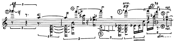 [69] Gitarre-Etüden-Werk, citado por Gilardino 1990: 125. Según Albert, el sistema italiano consistiría en indicar el armónico con la abreviatura “Flag.”, añadiendo además el traste en números romanos. En el sistema español, la abreviatura sería “arm.” y el traste se indicaría con números arábigos.