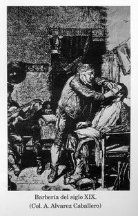 O sea, a la decrepitud del local, habríamos de añadir la posibilidad de que mientras cualquier cliente era afeitado, en el sillón contiguo hubiese otro haciéndose sacar una muela o practicándosele una sangría. E incluso, cualquier dama pariendo en el cuarto interior. La situación podía llegar a ser de lo más esperpéntica y repugnante. ¡Música, maestro!