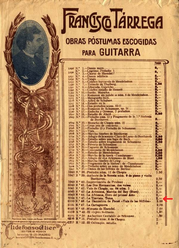 Tal vez la confusión en atribuir íntegramente la pieza a Tárrega, resida en un catálogo de la casa Idelfonso Alier y reeditado a posteriori por la Biblioteca Fortea y algunas editoriales más donde aparece un estudio que Tárrega hizo sobre un tema de la Traviata: "La Traviata. Tema" o "La Traviata – tema estudio por Tárrega".