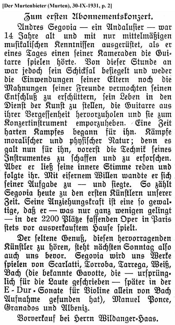 (2) Alberto López Poveda, Andrés Segovia: vida y obra, tomo 1.