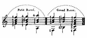 HENRY 1826: 25 dice que hay dos tipos de cejillas petit y grand Barré. En esta última