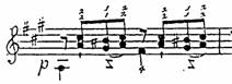 Algo más escasas son las referencias a la utilización de la cejilla con los dedos 2 y 3 de la mano izquierda. Ruggero Chiesa (CHIESA 1990), menciona el ejemplo de la fig. 4, que pertenece a la op. 7, Grosse Sonate (Viena, 1807) de Simon Molitor.
